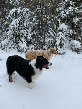 Louie is an excitable, playful, and very athletic dog. He enjoys outdoor time regardless of the weather, and especially loves coming on ATV trail days. Louie's sweetheart personality shines through when he lovingly cleans his puppies. Louie is originally from Ontario and comes from a mix of show and working lines. Louie has a medium-low working drive.