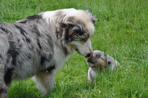 Ruby is my fun-loving girl! Specifically bred for temperament, she is the most friendly Australian Shepherd you will ever meet. Ruby is gentle, loves attention, and is great with children. She is also very active and enjoys lots of outdoor play time! Ruby was imported from the USA and comes from a mix of show and working lines. She is AKC and CKC registered. Ruby has a medium-low working drive.